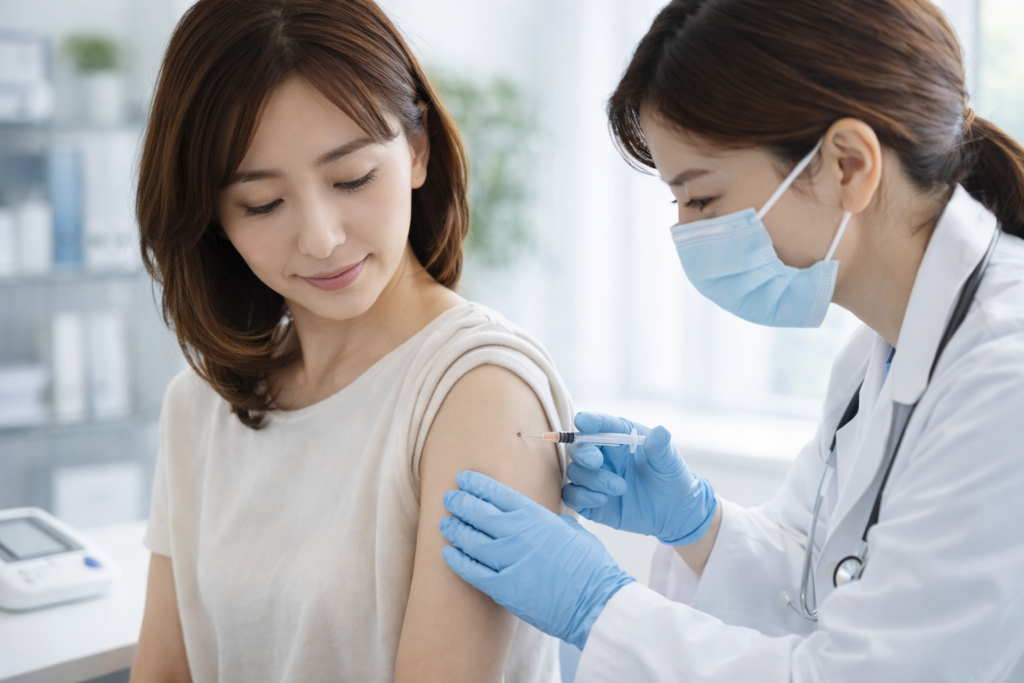 予防接種では、接種前に体調を確認したうえで、安全に配慮しながらワクチンを投与します。